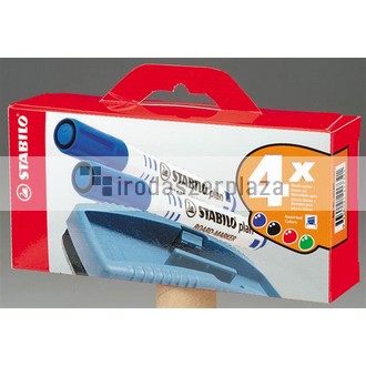 Táblamarker készlet, 2,5-3,5 mm, kúpos, szivaccsal, STABILO "Plan", 4 különböző szín