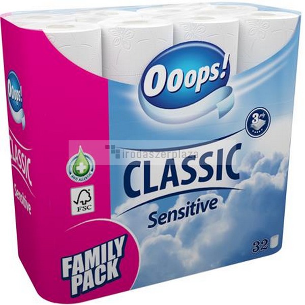 Toalettpapír, 3 rétegű, kistekercses, 32 tekercs, OOOPS "Classic", sensitive