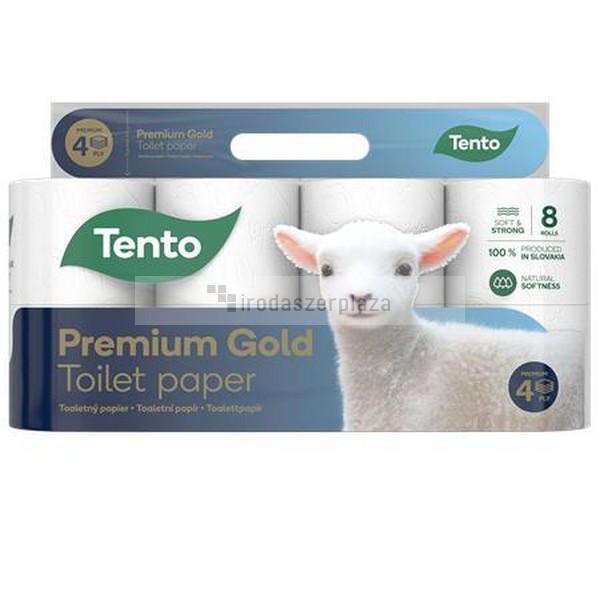Toalettpapír, 4 rétegű, kistekercses, 8 tekercs, TENTO „Prémium Gold”, fehér