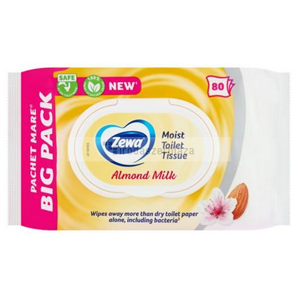 Toalettpapír, nedves, 80db, ZEWA, mandulatej