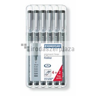 Tusfilc készlet, STAEDTLER „Pigment Liner 308”, fekete, 4+2 darab