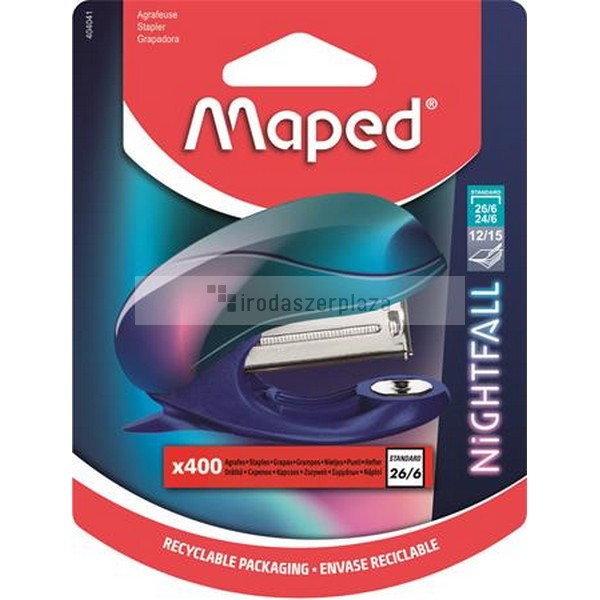 Tűzőgép, 24/6, 26/6, 15 lap, MAPED „Nightfall Mini”, metálfényű
