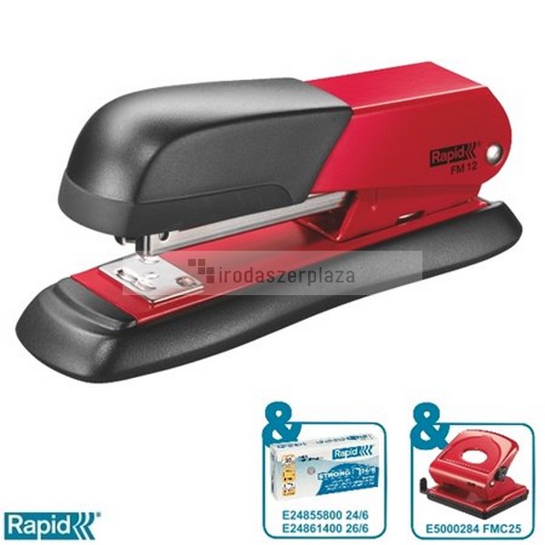 Tűzőgép, 24/6, 26/6, 25 lap, RAPID „FM12”, piros