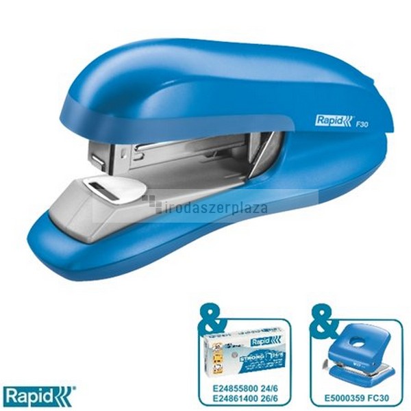 Tűzőgép, 24/6, 26/6, 30 lap, lapos tűzés, RAPID „F30”, élénk kék