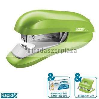 Tűzőgép, 24/6, 26/6, 30 lap, lapos tűzés, RAPID „F30”, élénk zöld