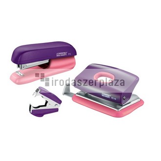 Tűzőgép, lyukasztó és kapocskiszedő szett, 10 lap, RAPID „F5 Mini”, lila/barack