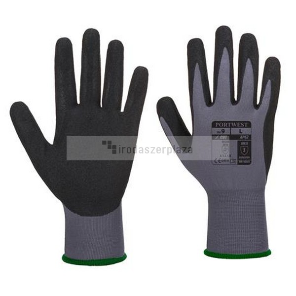 Védőkesztyű, nitril, L méret „Dermiflex Aqua”, szürke-fekete